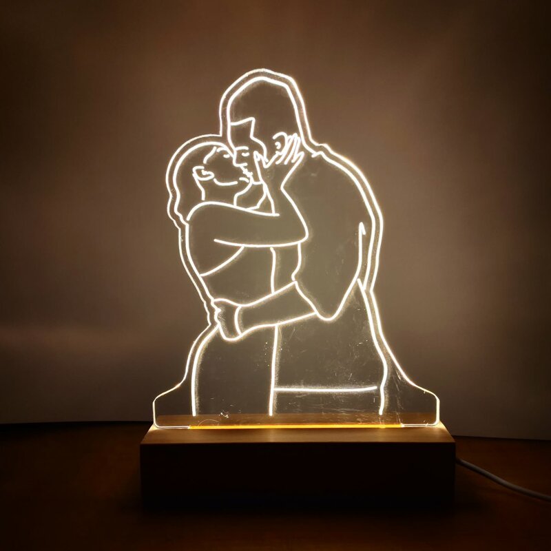 Fantastica lampada personalizzata.Base in legno, illuminazione led, incisione su plexiglas originale🔝Partiamo dalla tua foto per creare l'effetto stilizzato